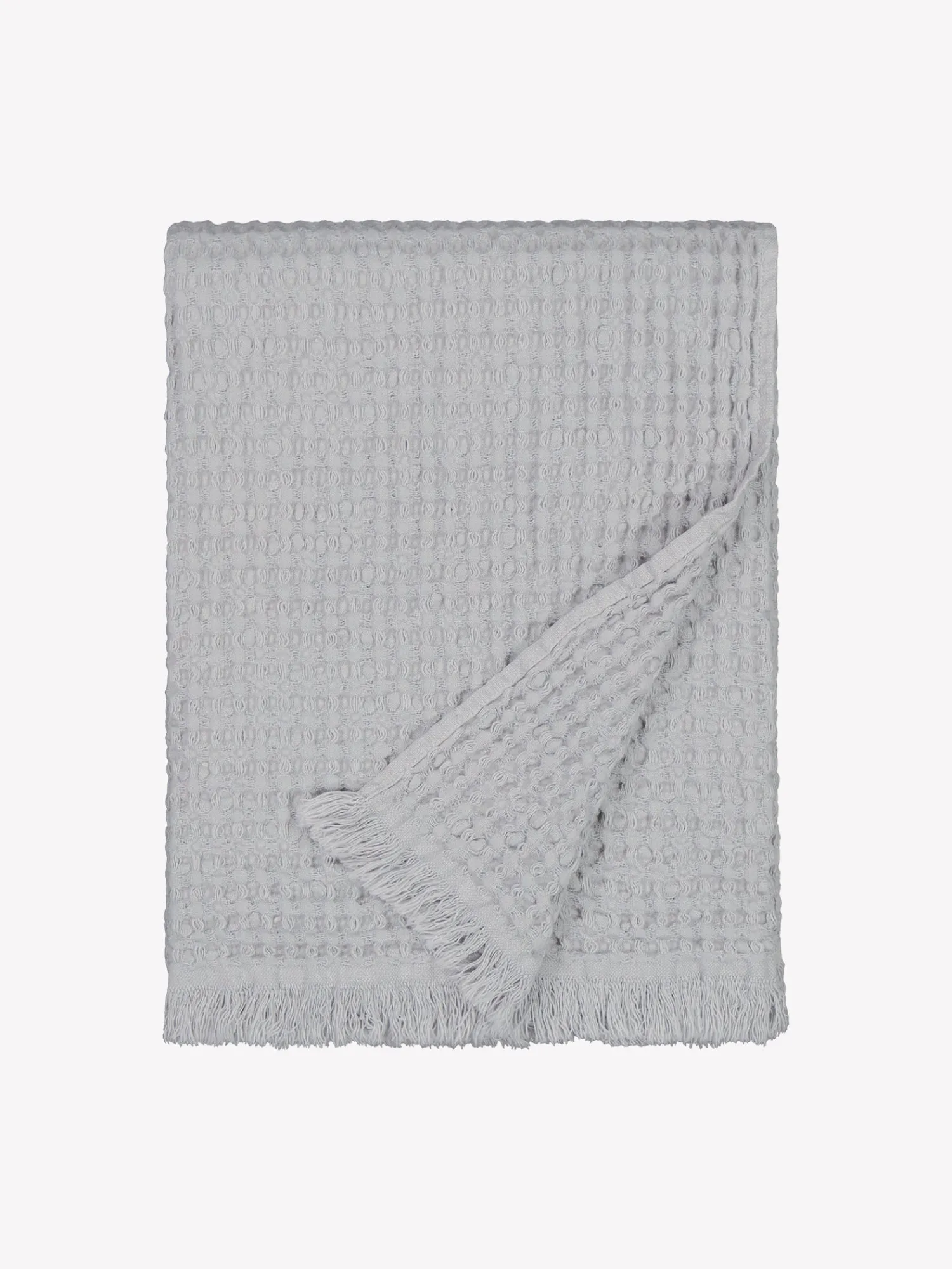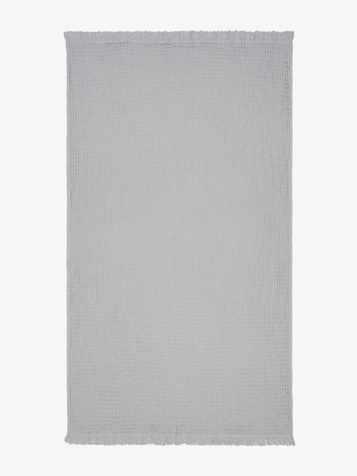 Nanson laadukas vaaleanharmaa Vohveli-kylpypyyhe. Vohveli-pyyhkeessä yhdistyvät nostalgisen vohvelikankaan hyvät ominaisuudet ja moderni ulkonäkö. Vohvelikangas imee hyvin kosteutta ja kuivuu nopeasti keveytensä ansiosta. Pyyhe menee pieneen tilaan ja on helppo pakata rannalle tai salille mukaan. Laadukas pyyhe tuntuu miellyttävältä iholla ja hoito-ohjeita noudattamalla se pysyy pitkään upeana. Kangas on värjätty Öko-Tex 100 -standardin mukaisilla värjäysaineilla. Kylpypyyhkeen koko on 70 cm x 140 cm ja ripustuslenkki on pitkällä sivulla. Pyyhkeen reunassa on koristeelliset hapsut.