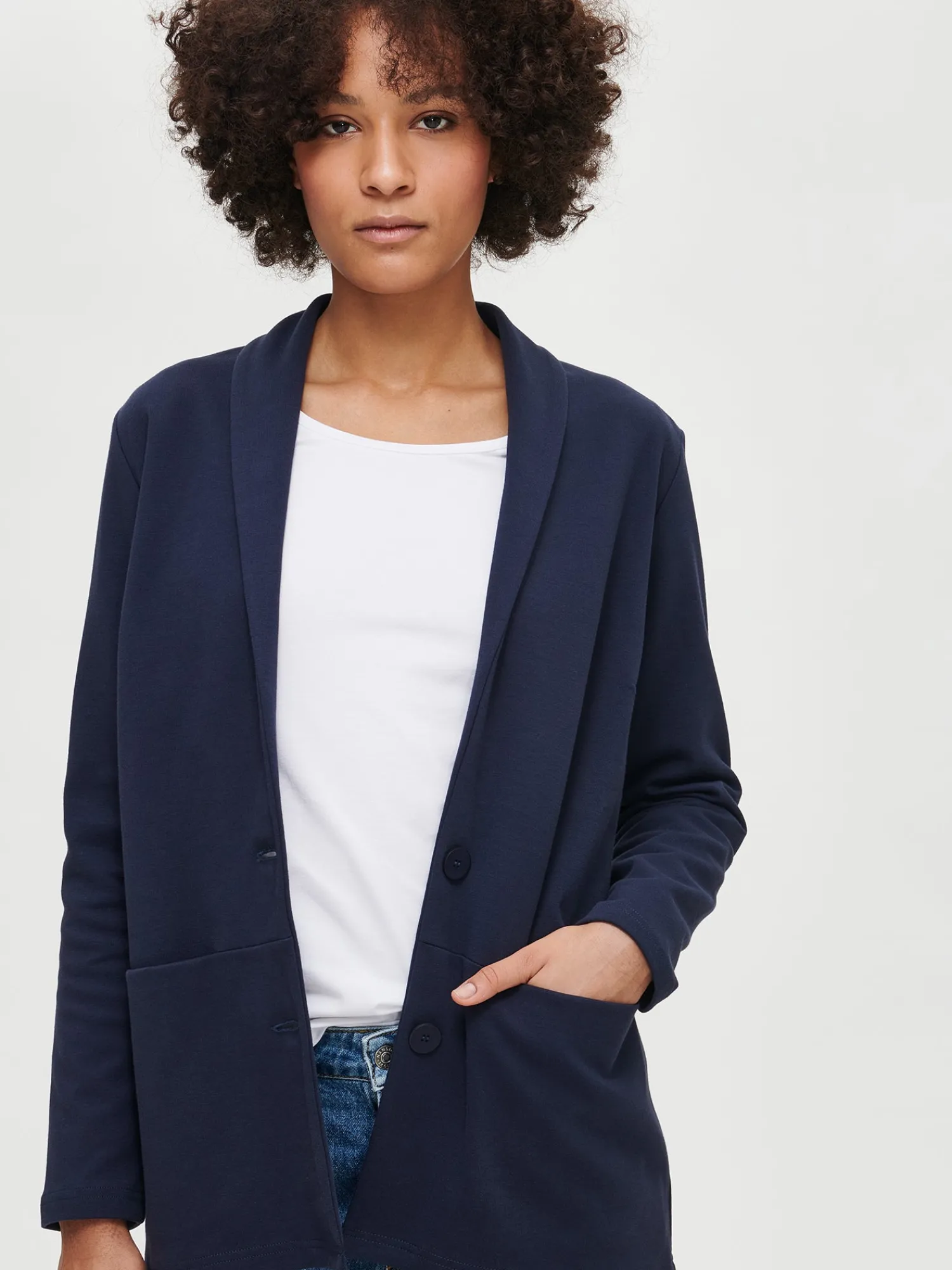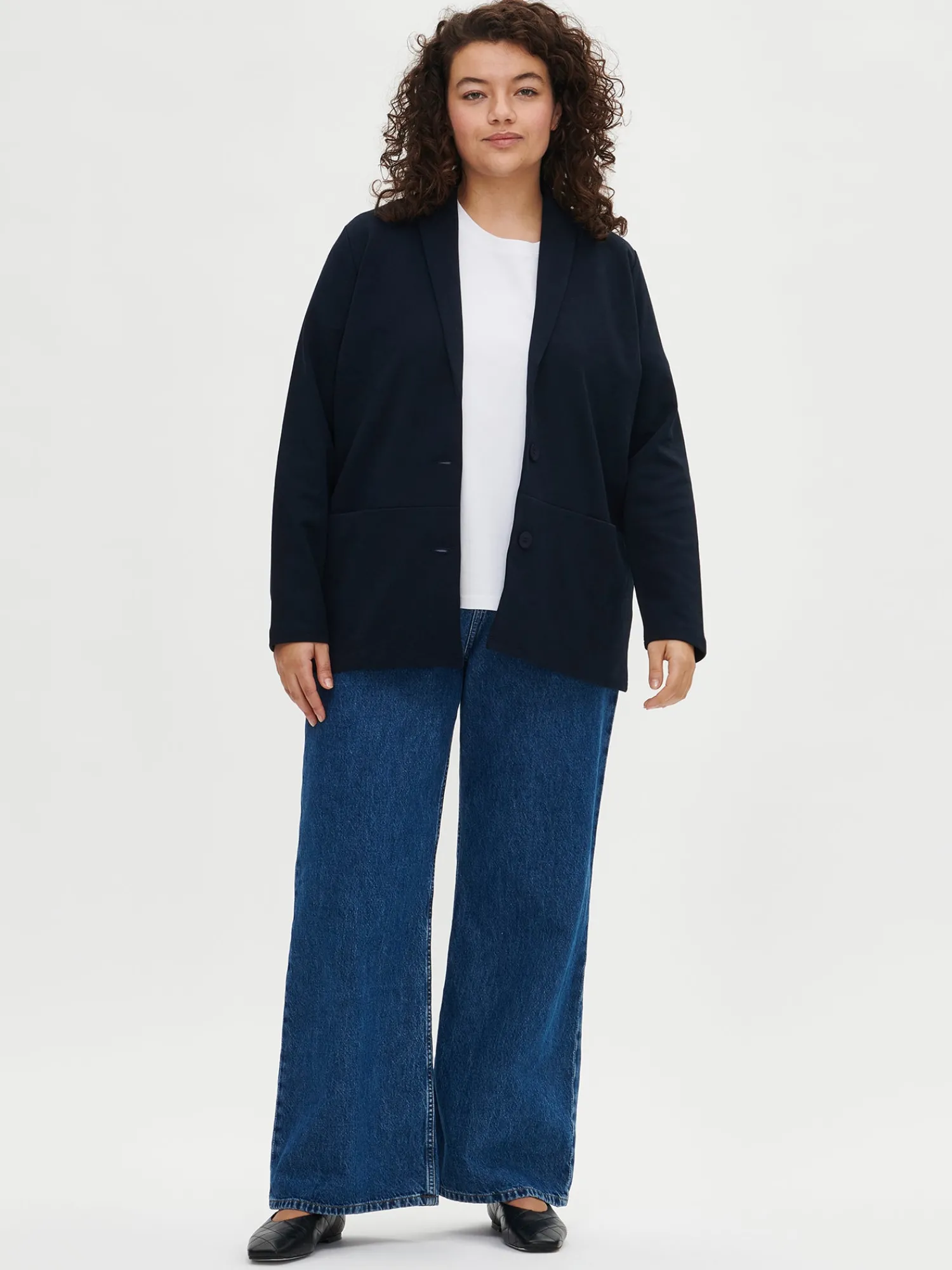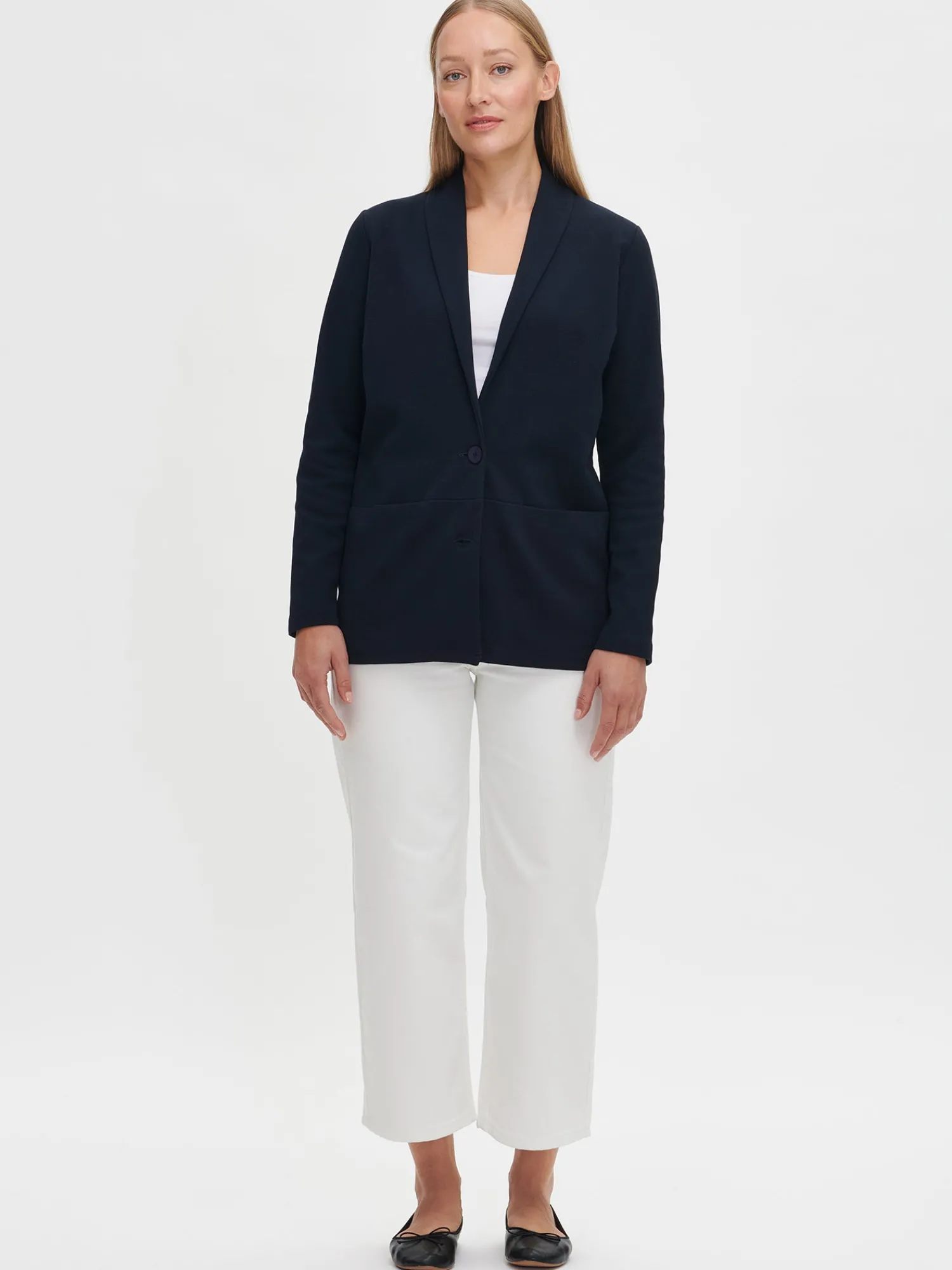 Wilma H. (ensimmäisessä kuvassa) on 174 cm pitkä ja hänellä on päällään tuotteesta koko S. Mallin ympärysmitat ovat: rinta 88 cm, vyötärö 68 cm ja lantio 98 cm.