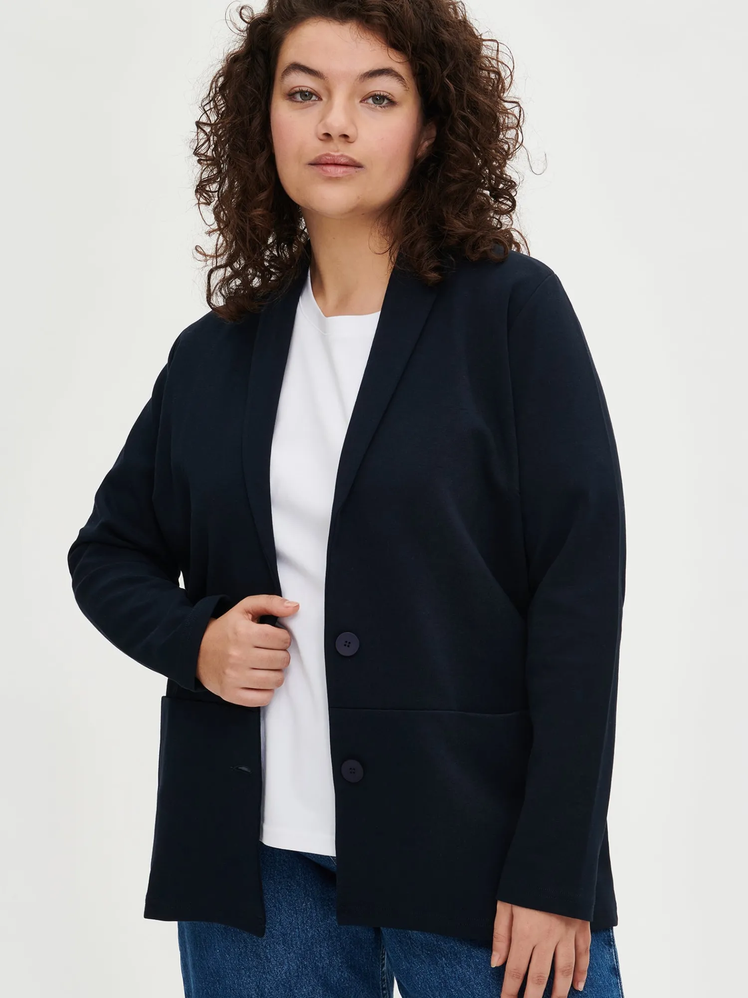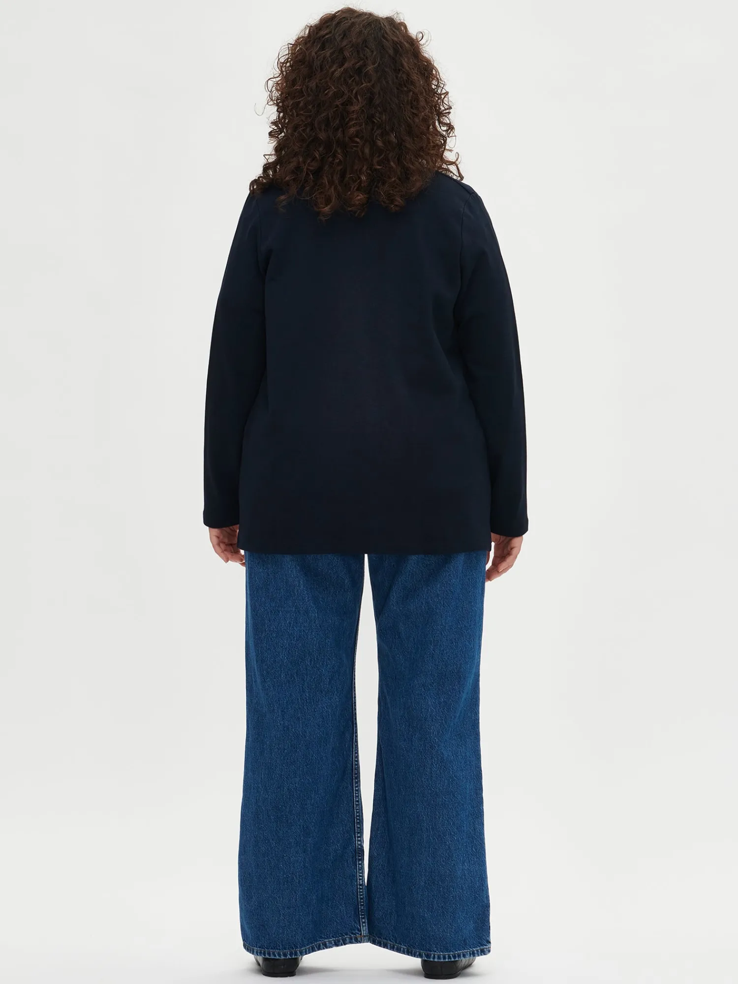 Sofie on 172 cm pitkä ja hänellä on päällään tuotteesta koko L. Mallin ympärysmitat ovat: rinta 105 cm, vyötärö 86 cm ja lantio 110 cm.