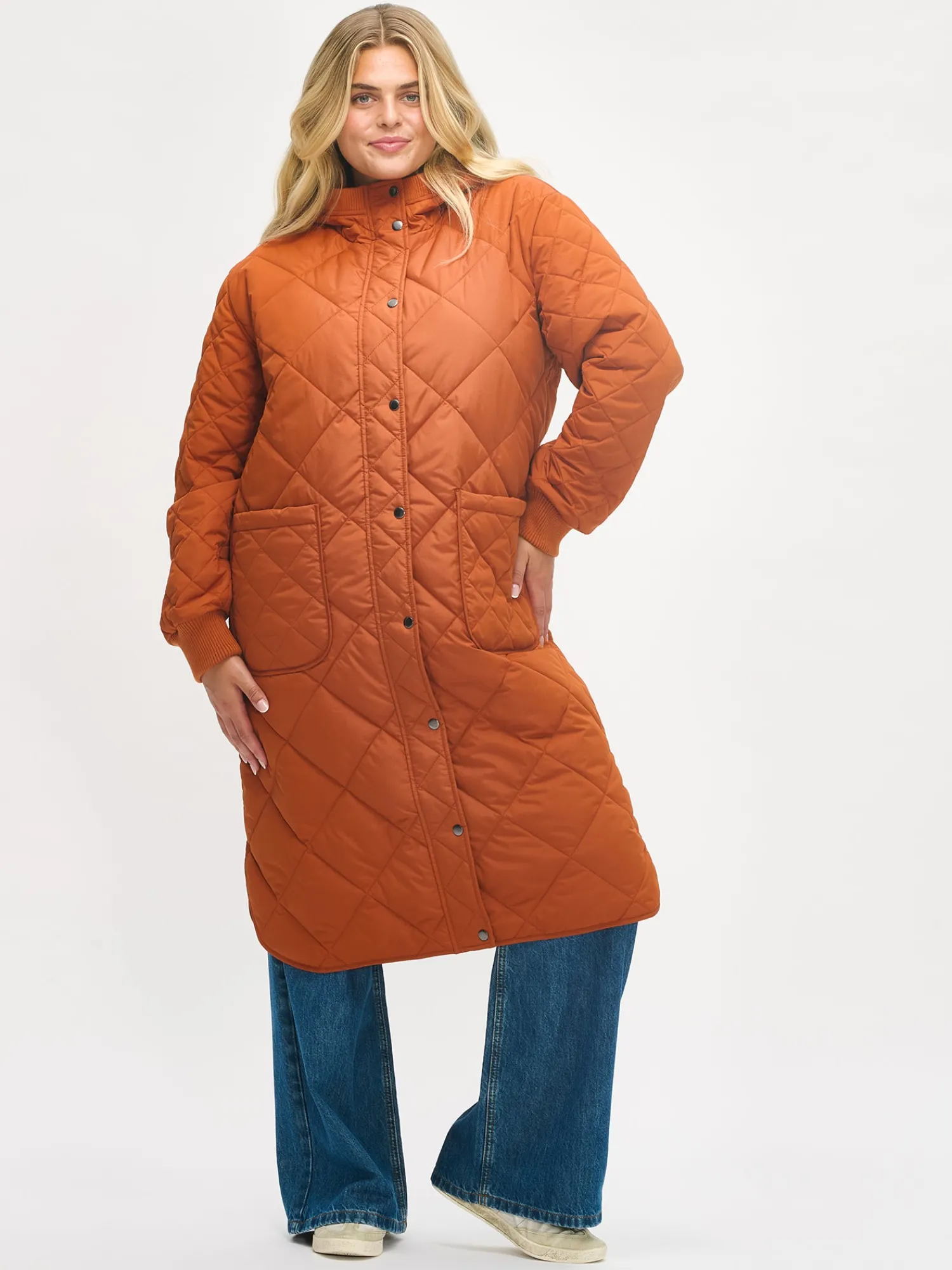 Naisten rennon tyylikäs oranssin ruskea Maxi Hood-tikkitakki kevyellä vanulla ja lämpimällä hupulla. Ajaton tikkitakki on ehdoton vaatekaapin kulmakivi ja luottovaate, joka sopii kaudesta toiseen. Hupullinen tikkitakki on täydellinen valinta välikauteen, sillä se on kevyt ja lämmin vaihtelevassa säässä. Pitkässä hupullisessa takissa on edessä kaksisuuntainen vetoketju ja nepparikiinnitteinen tuulilista. Hupun reunassa ja hihansuissa on mukava neulosresori. Takissa on pudotettu olkalinja, päällitaskut ja pyöristetty helma. Takin pituus koossa M on noin 115 cm. Materiaali on laadukasta vettähylkivää kierrätyspolyesteria ja takissa on Sorona-vanu.