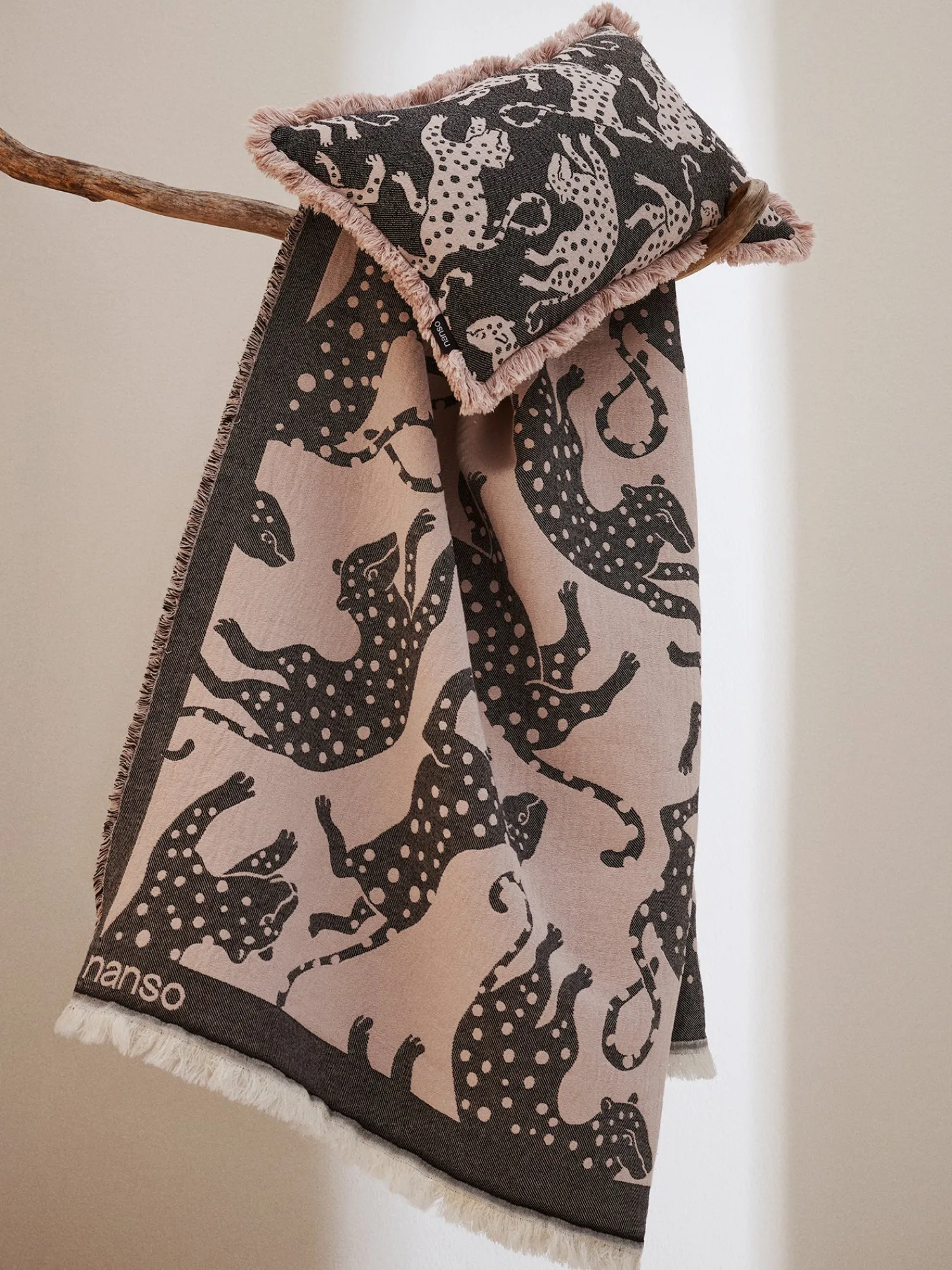 Leopardikuvioinen Hapsu-tyynyliina tummassa sävyssä on rohkea valinta, joka tuo sisustukseen näyttävää ilmettä. Kestävä puuvillamateriaali ja jacquard-kudonta takaavat laadun, kun taas reunoissa olevat beiget hapsut viimeistelevät kokonaisuuden. Vetoketju alareunassa tekee tyynyn vaihtamisesta vaivatonta. Kompakti 50 x 30 cm koko sopii täydellisesti tuomaan särmää sisustukseen.