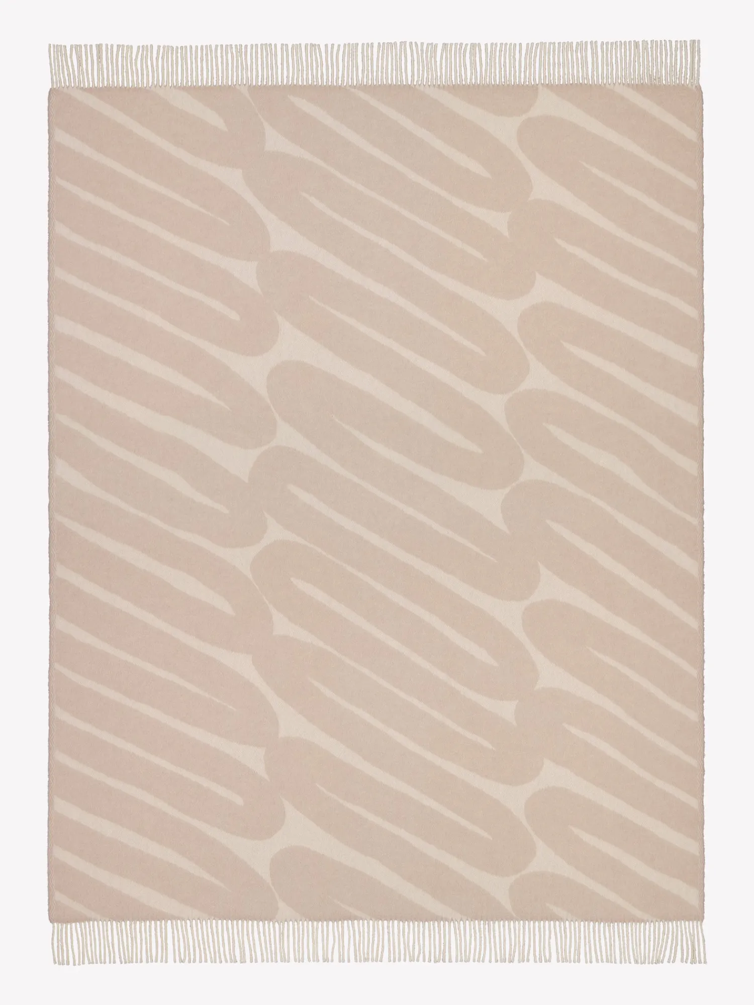 Laskos-villahuopa tuo kylmeneviin iltoihin mukavuutta ja lämpöä. 100% uudesta, puhtaasta villasta valmistettuun huopaan on ihanaa kietoutua syksyn hämärtyessä. Beigessä huovassa on kaunis graafinen kuvio ja lyhyitä sivuja koristavat kierrehapsut. Villa on antistaattinen ja luonnostaan likaa hylkivä materiaali. Huopa on kudottu jacquard-tekniikalla ja näin ollen kääntöpuolella on vastinvärit. Huovan koko on 130 x 170 cm.