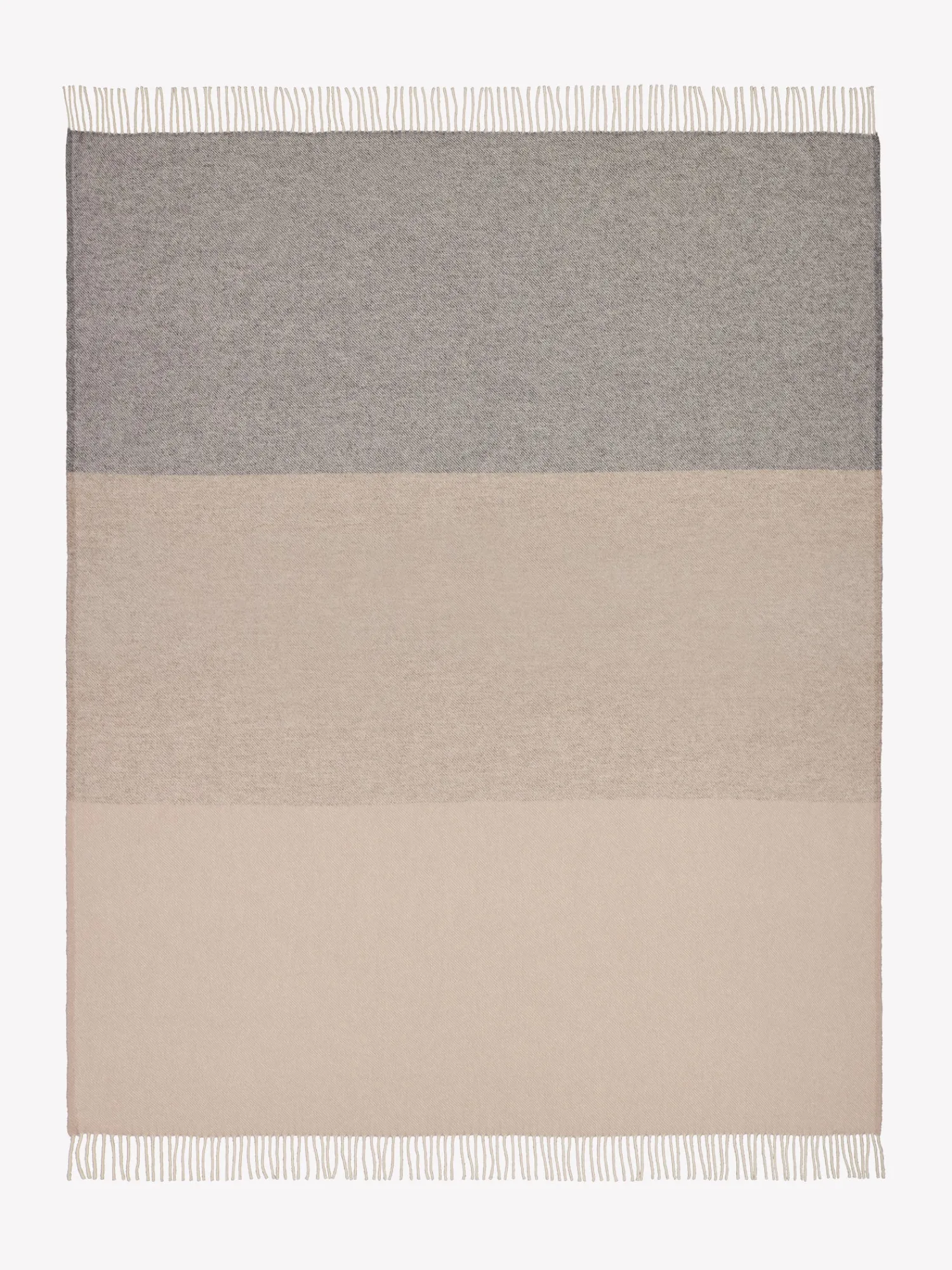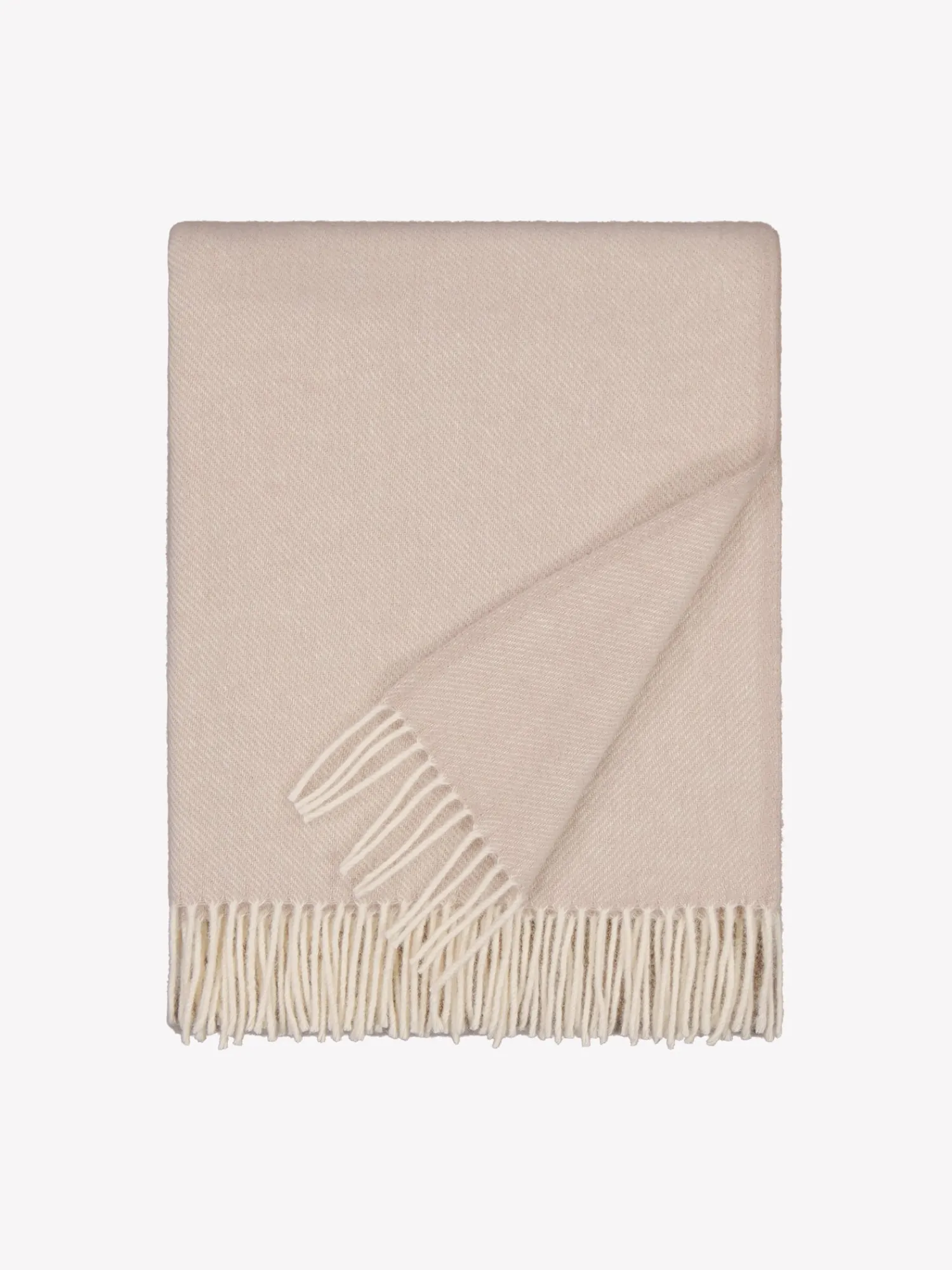 Kylmenevinä iltoina on ihanaa kietoutua 100% uudesta, puhtaasta villasta valmistettuun Trio-villahuopaan. Huovassa on kaunis beige raitakuvio. Villahuovan lyhyitä sivuja koristaa kierrehapsut ja vasemmassa alakulmassa on kudottu Nanso-merkki. Huovan koko on 130 x 170 cm.