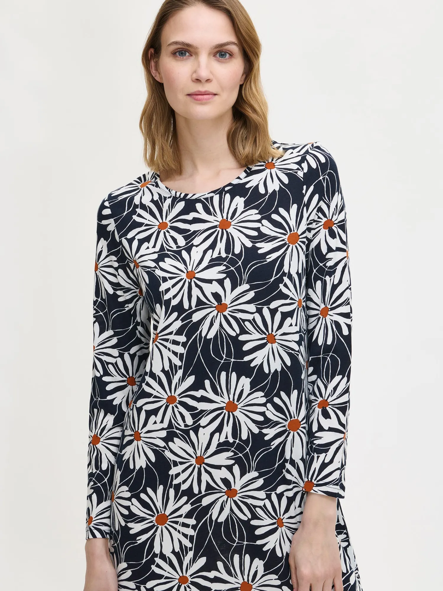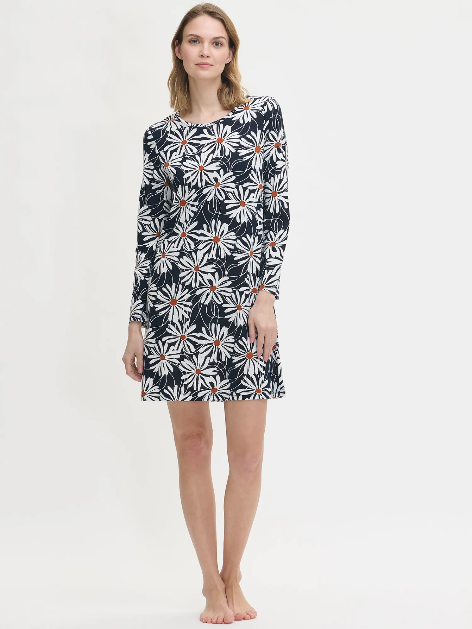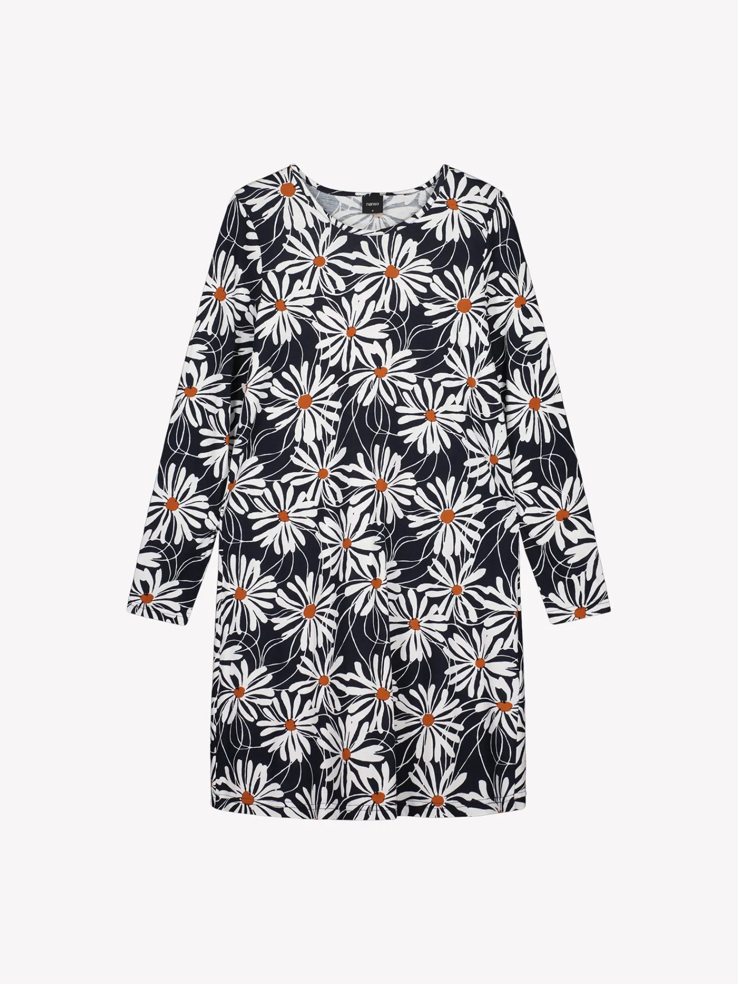 Naisten kukkakuosillinen Anette-yöpaita pitkillä hihoilla ja pyöreällä pääntiellä sinisessä värissä. Yöpaidan pituus koossa M on noin 95 cm. Materiaali on laadukasta, iholla miellyttävän pehmeältä tuntuvaa ja helppohoitoista puuvilla-modaalia, joka pysyy hyvänä pesusta toiseen.