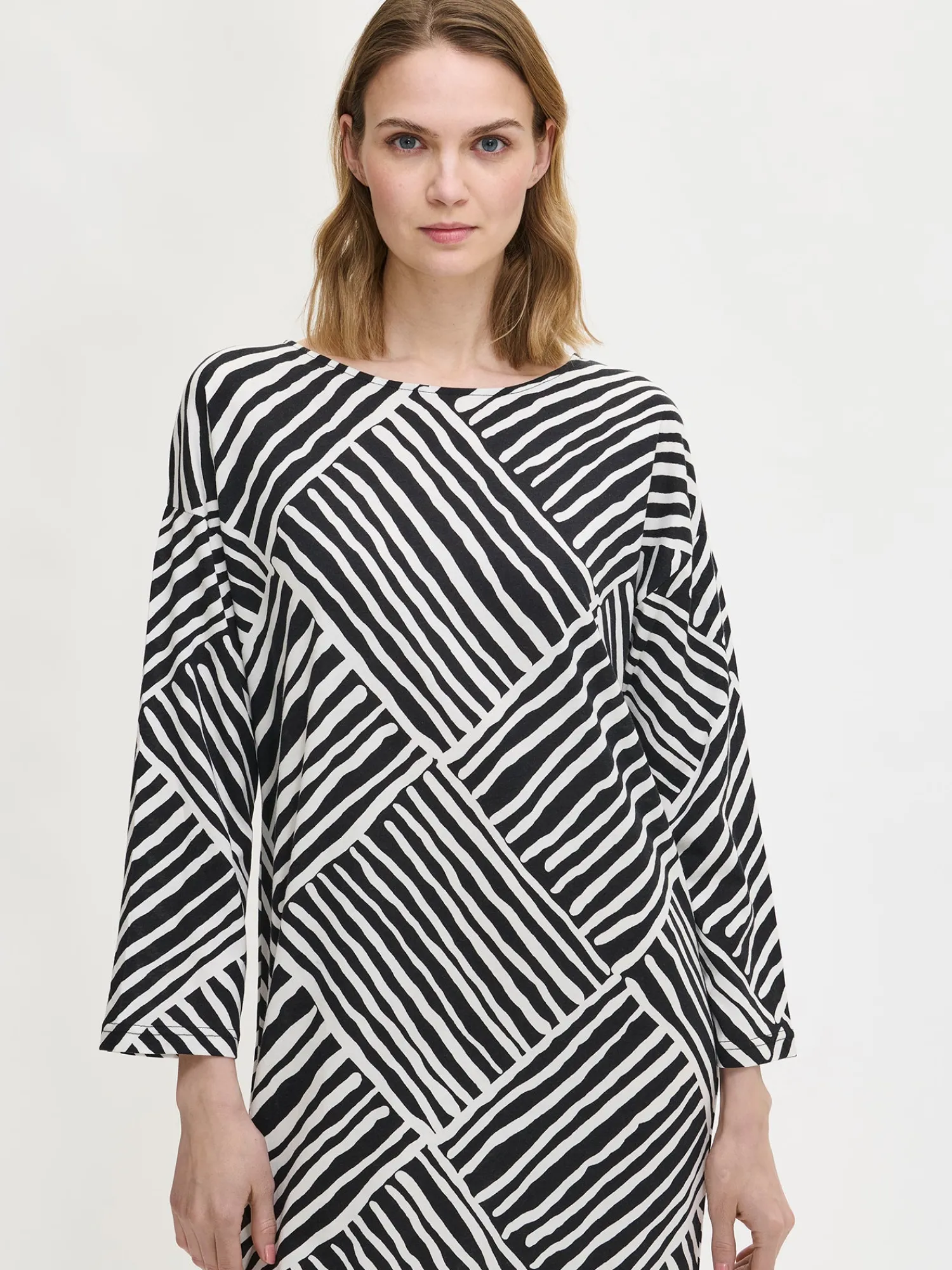 Naisten kuosillinen Kaisli-kaftaani ovaalilla pääntiellä. Kaftaanissa on pudotettu olka, täyspitkät hihat ja sivuhalkiot. Kaftaanin pituus koossa M on noin 130 cm. Materiaali on laadukasta, iholla miellyttävän pehmeältä tuntuvaa ja helppohoitoista puuvilla-modaalia, joka pysyy hyvänä pesusta toiseen.