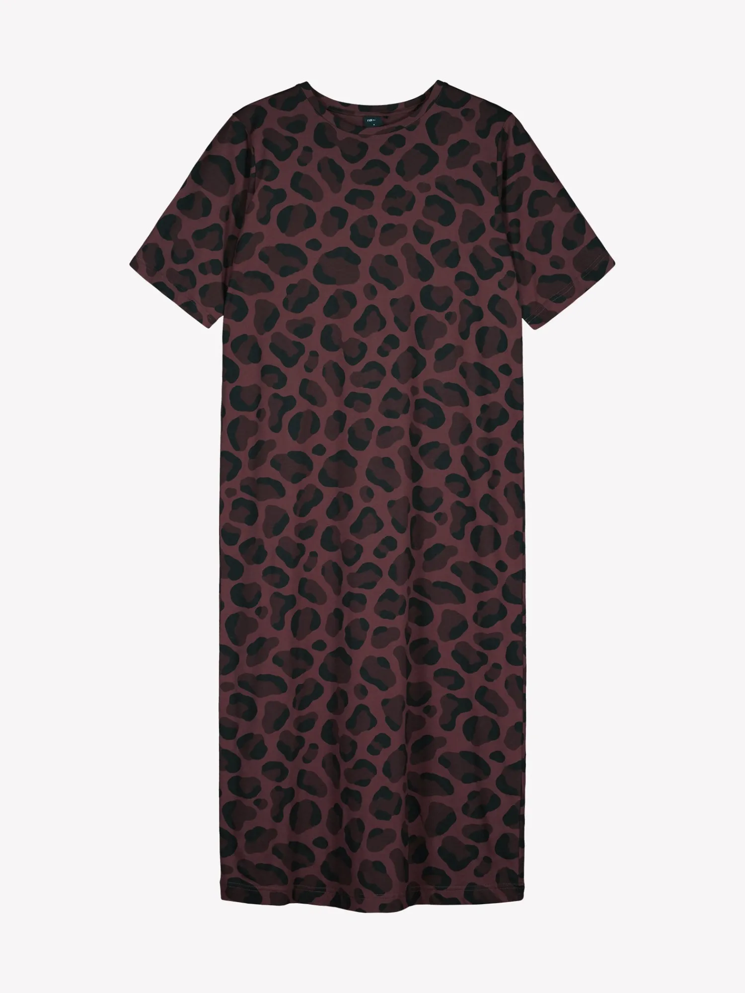 Naisten kuosillinen suoralinjainen Pantteri-yöpaita puoli pitkillä hihoilla ja pyöreällä pääntiellä. Yöpaidan pituus koossa M on noin 130 cm. Materiaali on laadukasta, iholla miellyttävän pehmeältä tuntuvaa ja helppohoitoista puuvilla-modaalia, joka pysyy hyvänä pesusta toiseen. Leikkisä Pantteri-kuosi ja väljä malli tekevät tästä yöpaidasta ihanan valinnan rauhallisiin iltoihin ja hitaisiin aamuihin.